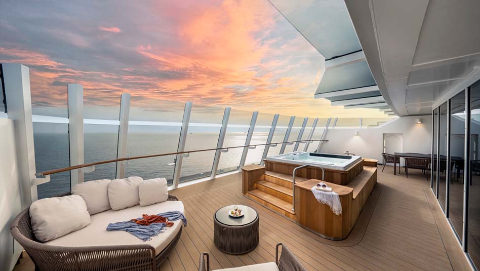 סוויטות בעלים (Owner’s Suites): ייחודיות למתחם MSC Yacht Club באוניות World Class מדובר בשתי סוויטות בעלים מרווחות במיוחד המשתרעות על פני יותר מ-150 מ”ר כל אחת. הסוויטות כוללות חדר שינה זוגי עם חדר ארונות וחדר רחצה הכולל אמבטיה מפוארת שמתחבר לאזור אירוח-אוכל נפרד, ומרפסת פרטית גדולה עם ג’קוזי ופינת אוכל תחת כיפת השמיים.