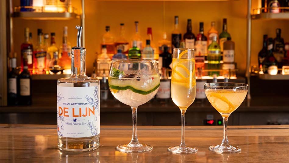De Lijn Gin מכיל תערובת של צמחים בהשראה הולנדית, כולל תפוז, ורד, סמבוק, ורבנה לימון, לימון, פטל וערער. כל צמח מזוקק קר בנפרד כדי להבטיח את הטעמים המקוריים. התוצאה היא ג’ין פרימיום, בהשראת ההיסטוריה העשירה של החברה. הג’ין הבלעדי זמין בכל הברים והטרקלינים של הולנד אמריקה ליין ברחבי הצי וניתן ליהנות ממנו במגוון קוקטיילים מיוחדים.