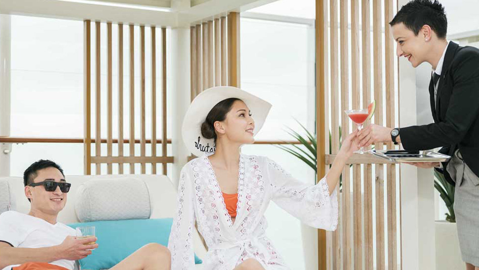 יחס 1:1 בין נוסע לאיש צוות שהוא מהגבוהים בעולם השייט וכולל שירות באטלר קונסיירז’ 24 שעות ביממה.