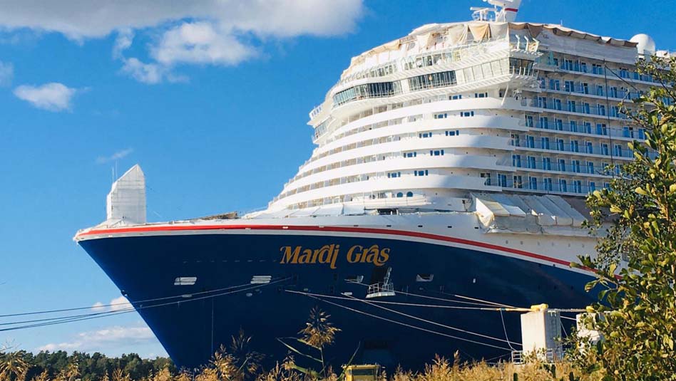 הבנייה של מרדי גרא (Mardi Gras) האונייה החדשה של קרניבל קרוז ליין מתקדמת במספנת מאייר טורקו פינלנד. האונייה הגדולה בצי, תהיה במשקל 180,000 טון בעלת קיבולת הנוסעים הגדולה בעולם (6,600 נוסעים).