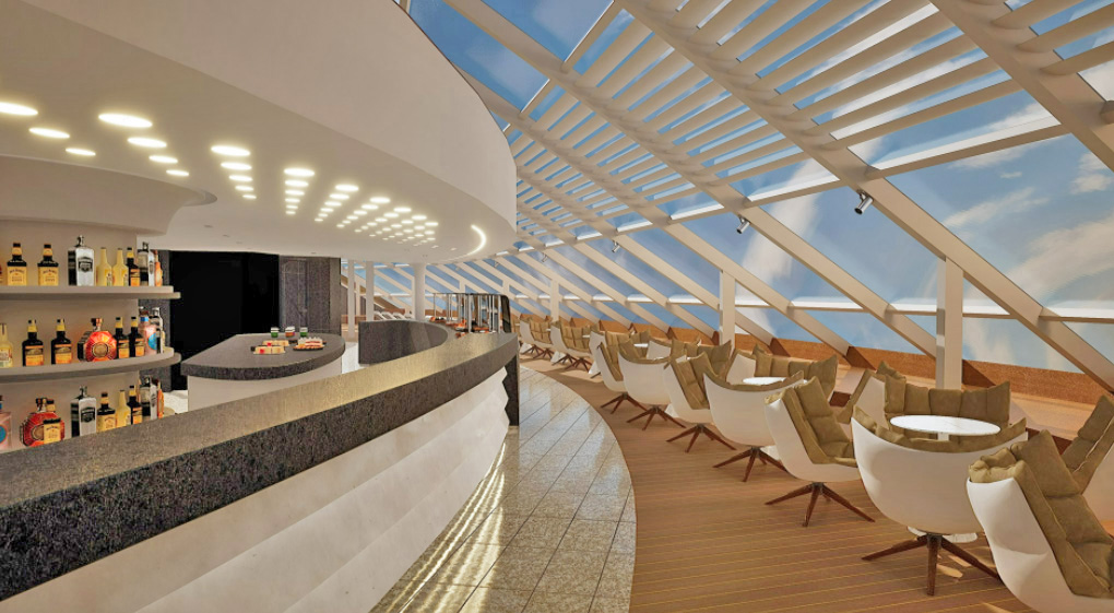 מרפסת שיזוף חדשה – המשתרעת על פני שני סיפונים ולאורחים יש הרבה מקום ליהנות מנופי הים האולטימטיביים מחרטום האונייה. הסיפון התחתון מציע רוגע ולגימת כוס שמפניה מהבר או ארוחה קלה מהגריל, בעוד שבסיפון העליון יש בריכה פרטית וג’קוזי בהם האורחים יכולים להשתזף בשמש בכיסאות נוח או באחד הביתנים הפרטיים המסוגננים.